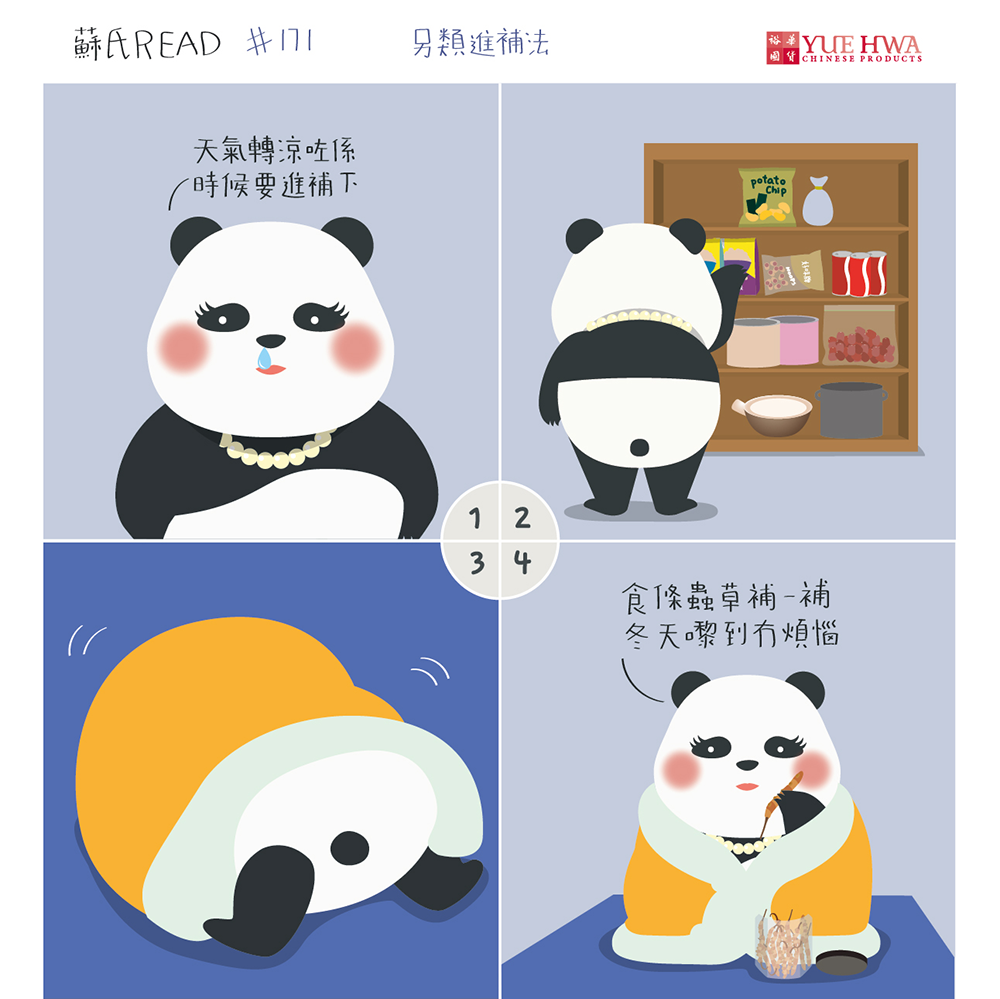 【另類進補法】 冬天最爽一定係匿喺被竇入面狂刷零食,蘇嫂都唔例外,不過…… 可能唔再係青春少艾,佢攬住嗰包已經唔再係薯片,而係……一大堆有益身心嘅補品!補身唔嫌早,小編雖然仲係好青春,不過都要學下蘇嫂咁匿喺被竇進補先!