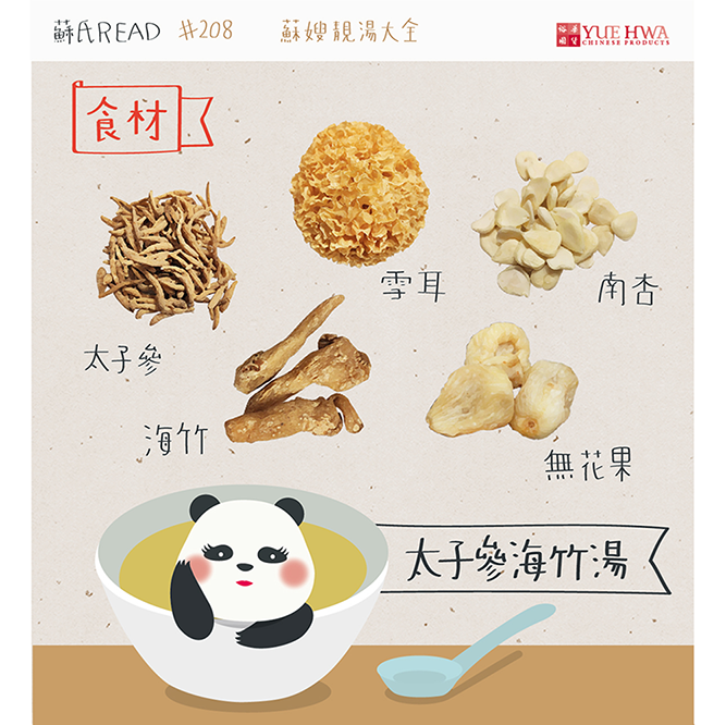 【蘇嫂靚湯大全】 唔聲唔聲,原來已經立秋啦!立秋之後要飲多啲湯水,咁先可以保持身體健康。 今日蘇嫂就教大家煲呢款秋天滋潤湯水-「太子參玉竹湯」,材料有: 太子參一兩 玉竹一兩 南杏五錢 雪耳一隻 無花果3-4粒 瘦肉適量 大家如果想煲呢款靚湯,可以嚟裕華買材料,順便同我哋嘅店員交流吓心得嘛!