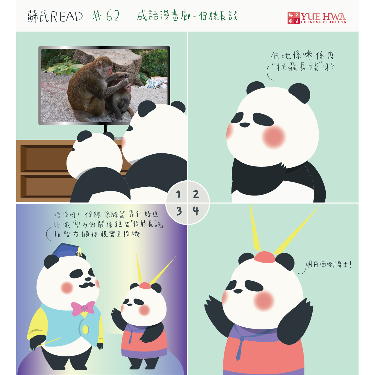 【成語漫畫廊 - 促膝長談】登登登登……又係學成語嘅時間啦!話說蘇氏兩父子睇睇下電視,Jack蘇突然醒起一個成語,不過佢就諗錯左隔離……一日最衰都係佢細個唔肯睇成語動畫廊啦。不過唔緊要,蘇波榮即刻「熊貓博士」上身,一齊睇下佢點講先~ #成語動畫廊 #此捉蝨不同彼促膝 #熊貓博士與YY助手 #童年回憶 #點只國貨咁簡單 #蘇氏Read #Comic #yuehwahk #蘇GoodFamily